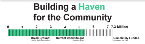 As of June 2025, we have received $5.4 million of the total projected cost of the gymnasium and plaza. We have less than $2 million left to fully fund!